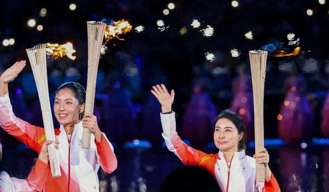 11月9日晚,郭晶晶与王欣瑜共同担任十五运会开幕式第三棒火炬手。