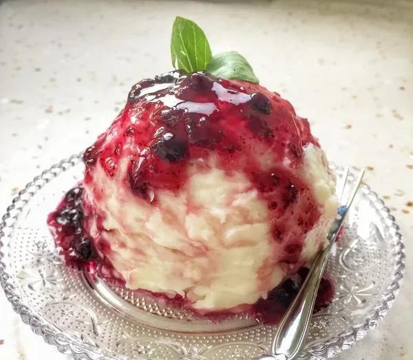 5. 最后淋上蓝莓酱即可。