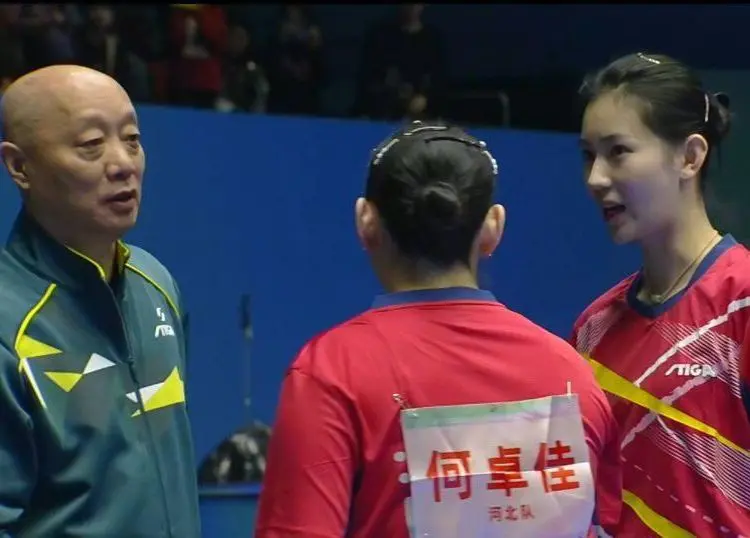 第三盘何卓佳2-3输给陈熠(11-8、6-11、11-9、7-11、11-13),何卓佳10-9率先拿到盘点,结果因为发球被罚,心态受到影响,直接导致被陈熠逆转,对于这个结果河北队提出质疑,何卓佳更是哭着跟裁判组理论,给大家的感觉是特别委屈,但是裁判组坚持自己的观点,把这分给陈熠。