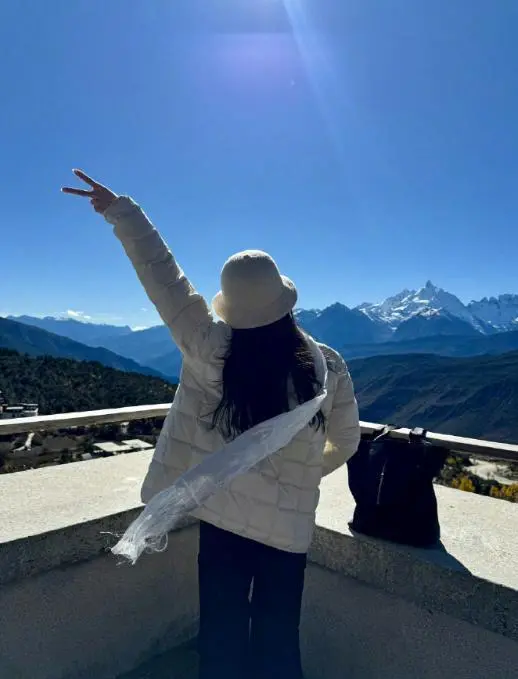 虽然她没配啥煽情文案,但照片里的状态藏不住 —— 穿着轻便外套站在观景台,身后是云雾缭绕的雪山,完全没有网传 “情场失意” 的憔悴感。