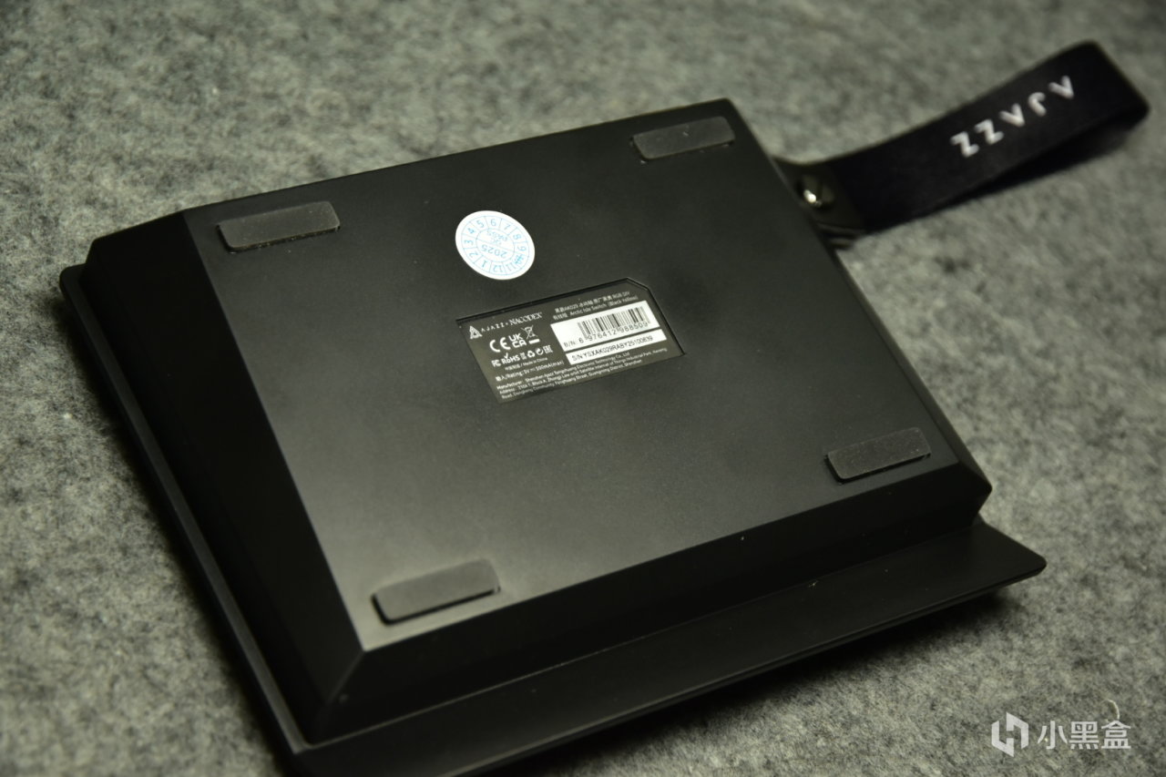 键盘下方也做了倾斜的设计,防止边缘硌手,在斜坡边缘,也印了黑爵的LOGO,丰富了键盘的细节。