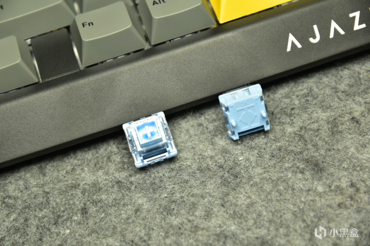 这款键盘采用的轴体名为冰屿轴,淡蓝色的配色搭配透明的上盖,就像一座冰山,非常好看。上盖有着防尘壁设计,将键盘按键按压到底使劲摇晃,可以感受到非常稳固,确保了按键的稳定触发,另外轴体的短行程轻压力,非常适合游戏使用,当然键盘还有其他轴体可供选择。