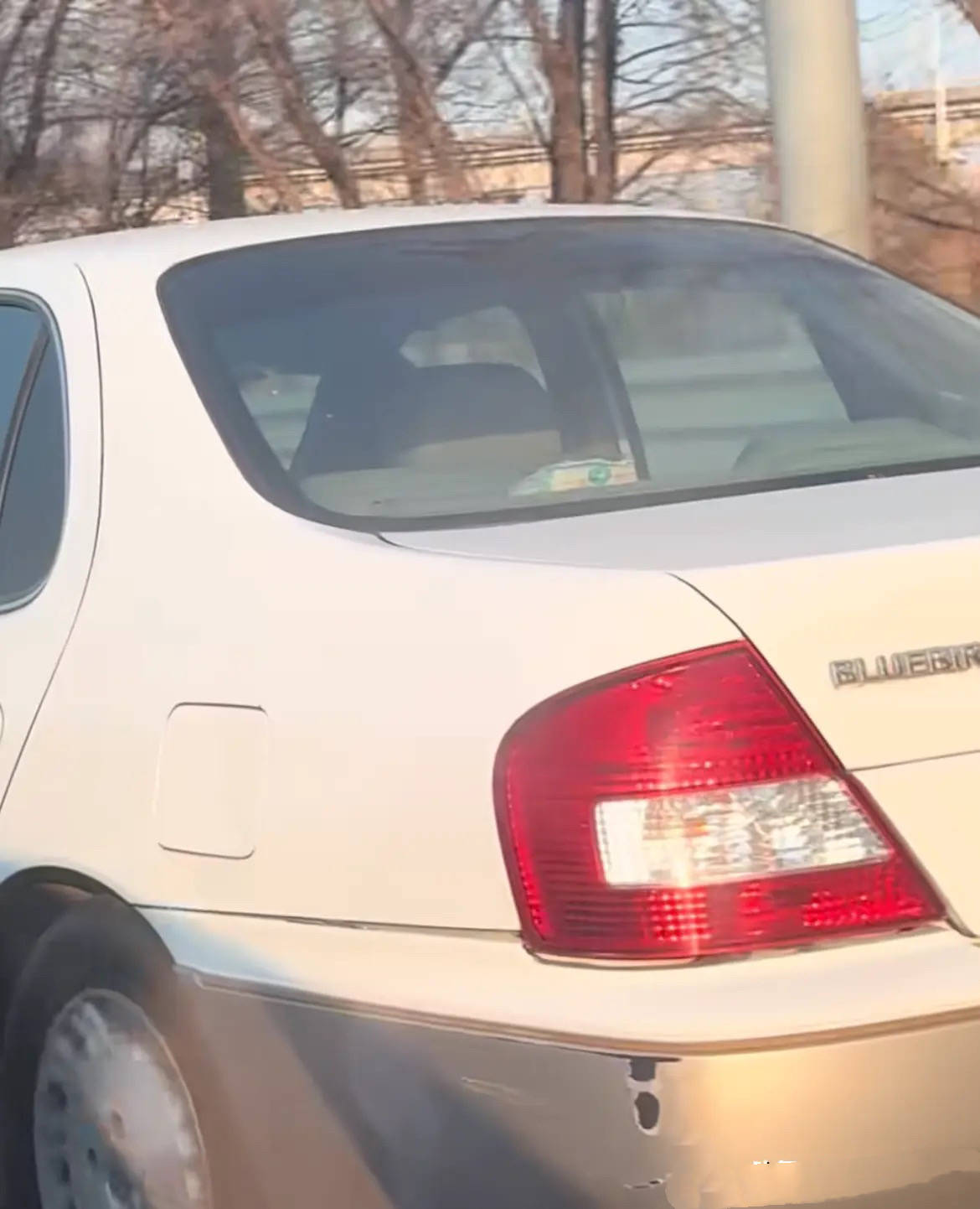 这是一辆白色的尼桑,从车尾的位置看,也有不少剐蹭。王丽云没有给车喷漆、也没有换新车,还开着20年前的老车,真是让人挺难理解的。