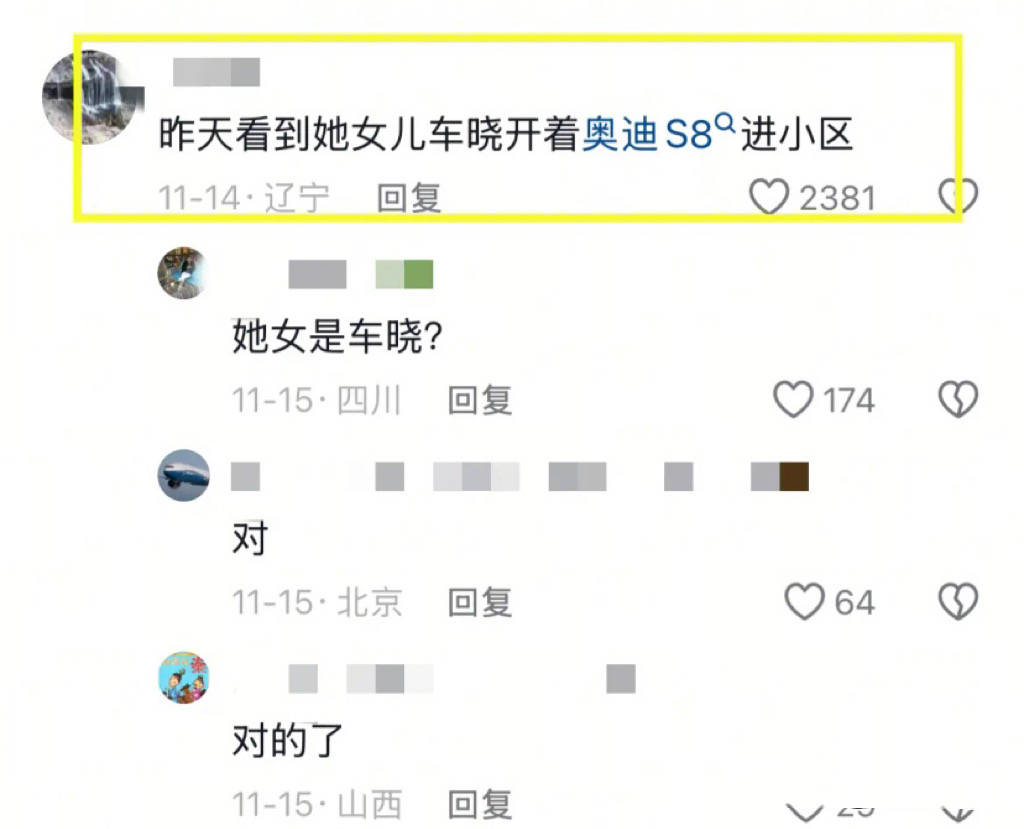 即便离婚后,车晓的经济也没有受到影响。有网友偶遇,车晓的座驾是奥迪S8,这款车报价在200万以上,比妈妈的车贵了10倍都不止。