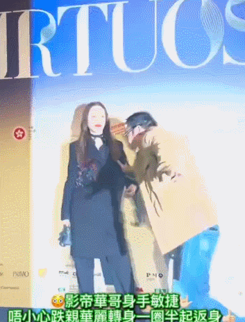 起身后,任达华立刻比出“剪刀手”向现场观众示意,连连用粤语说道:“没事没事,好犀利!(厉害之意)”还不忘幽默地调侃一句,称自己“对地毯有一种情怀”,轻松化解了尴尬气氛。
