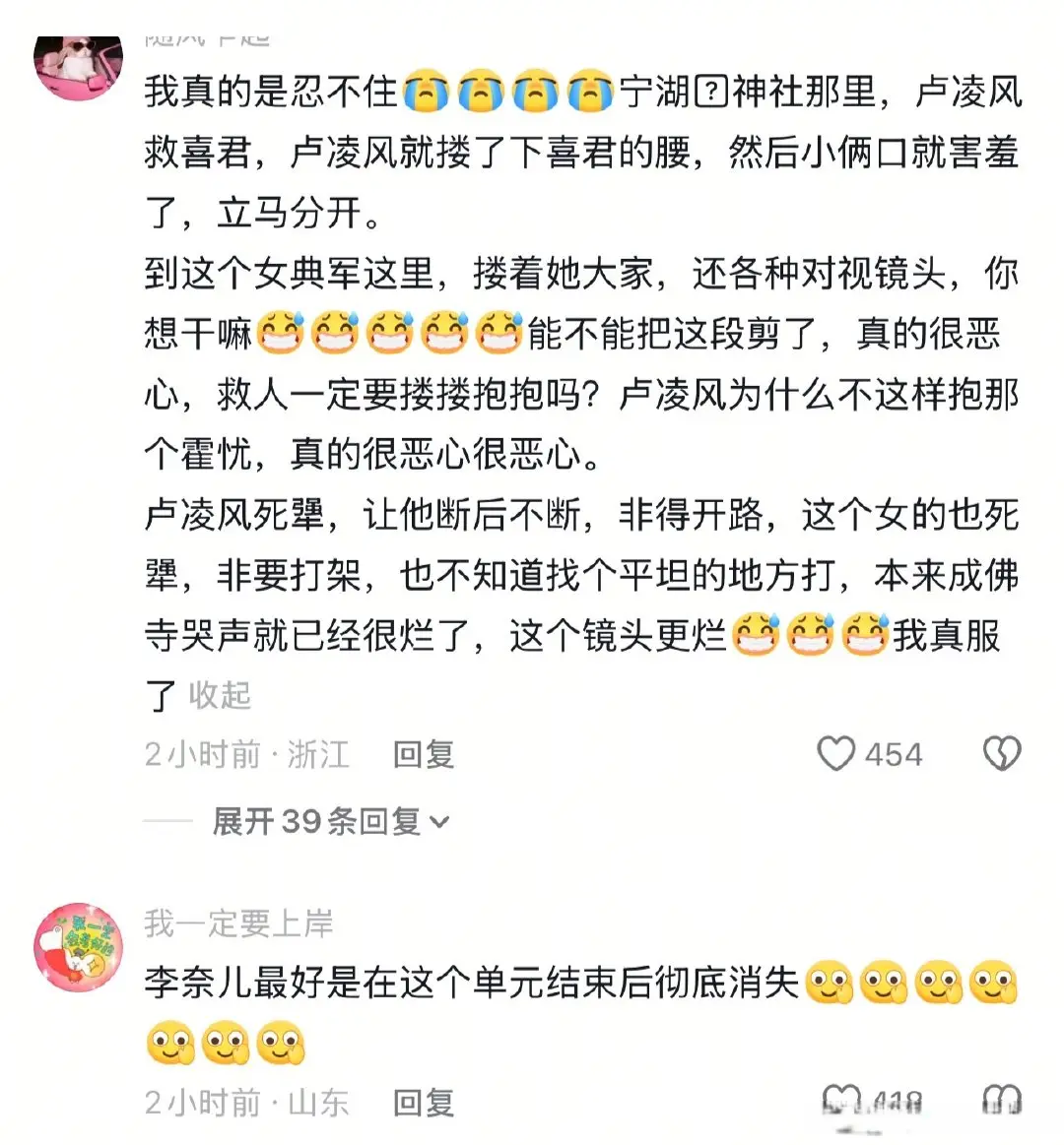 更把老粉们心戳得稀碎是强行加卢凌风与李奈儿的暧昧慢镜头,演员连夜辟谣都拦不住观众的反感,好好的探案线硬塞擦边感情戏,一个“喜追风”刚刚好,加个李奈儿就纯属画蛇添足。