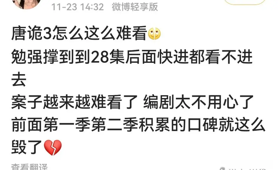 好好的一手好牌打稀烂,《唐诡3》的口碑崩盘,不光是一部剧的遗憾,更该给行业提个醒:IP养成靠用心,不是靠快节奏圈钱,没了故事支撑,再华丽也走不长远。