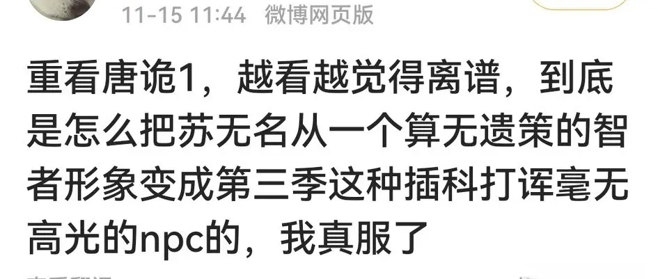 还有推理环节,以前靠苏无名抽丝剥茧,现在全靠主动招供,苏无名沦为背景板npc。