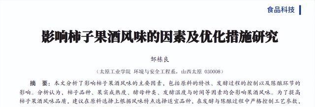 影响柿子果酒风味的因素及优化措施研究,邹栋良,食品安全导刊,2025-03-25