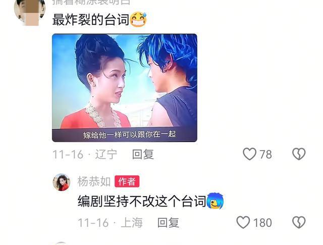 当网友拿出她在风云里那句毁三观的台词说事时,她也直言不讳:编剧坚持不改这句台词!