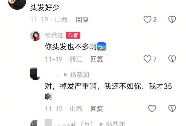 当有人说她头发少,她也会不客气回怼:你头发也不多啊!