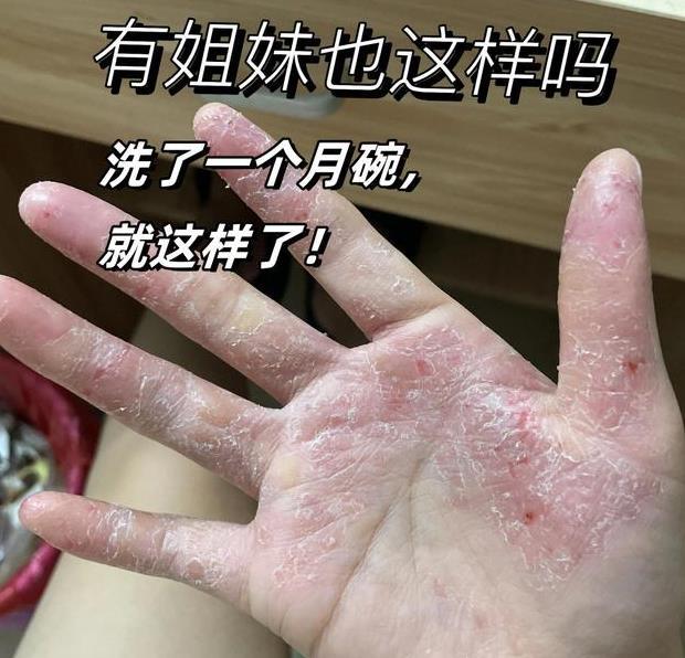 要是碗洗得多,洗得久,手指就会长倒刺,出现小伤口,然后发红发肿,皮肤屏障都被破坏了。