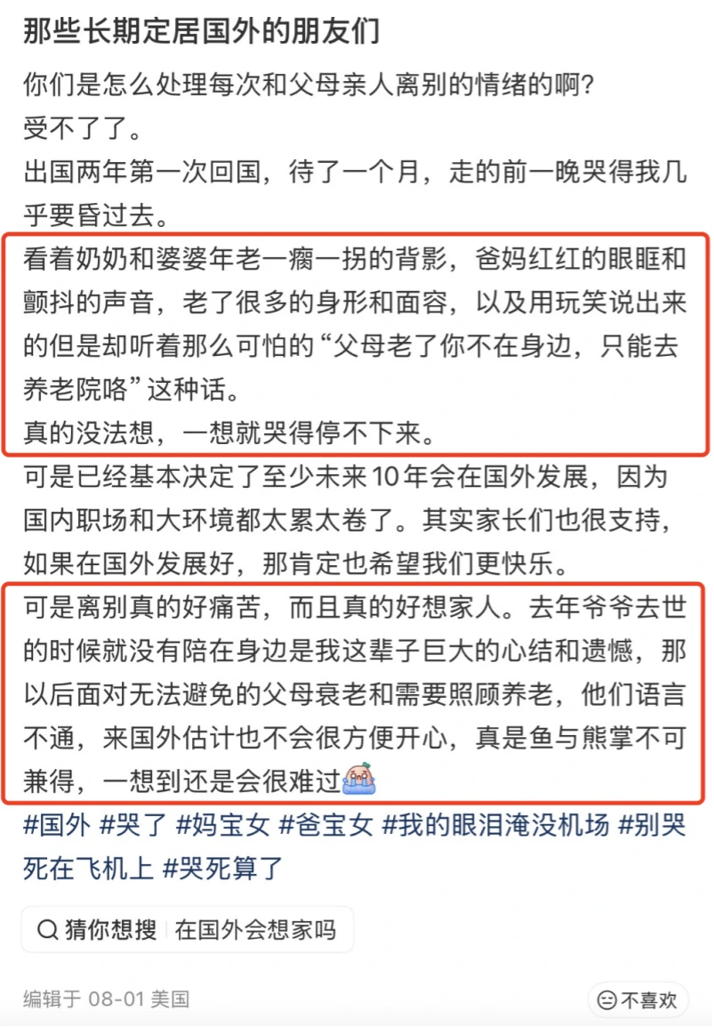 社交平台上,一位出国定居的网友咨询如何处理和父母的关系,评论区里,挤满了同样的叹息。