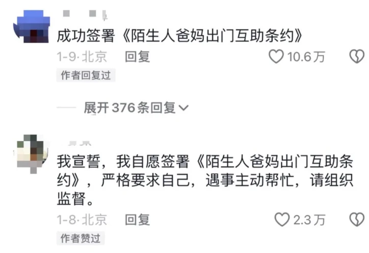 去年,一份《陌生人爸妈出门互助条约》在网络上悄然流传。