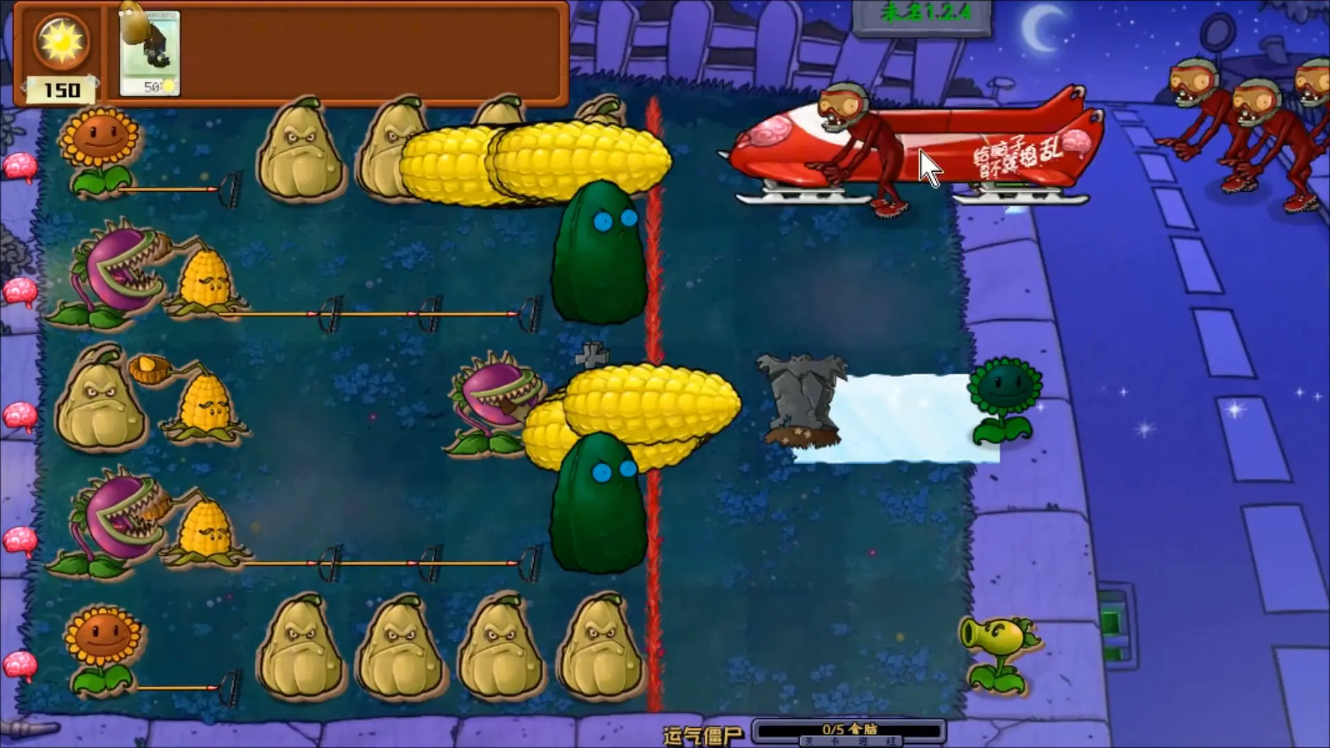 冰车这手可太关键了,硬控倭瓜,还换掉一个钉耙,顺手还解决了一颗玉米投手。兄弟你忘记你的梦想了吗?接下来再拿一下5路阳光,玉米投手发射玉米棒也就算了,你个小豌豆也来凑热闹,能不能给我来一首滑雪兄弟。投篮僵尸轻松拿下5路。