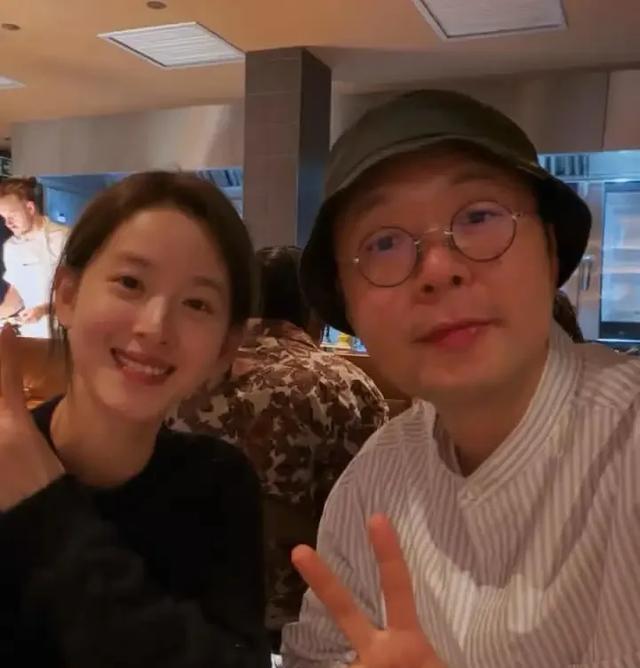 照片里两个人坐在巴掌大的小圆桌前,章泽天扎着马尾打扮朴素,穿着低调的黑色圆领毛衣,笑起来甜美又可爱