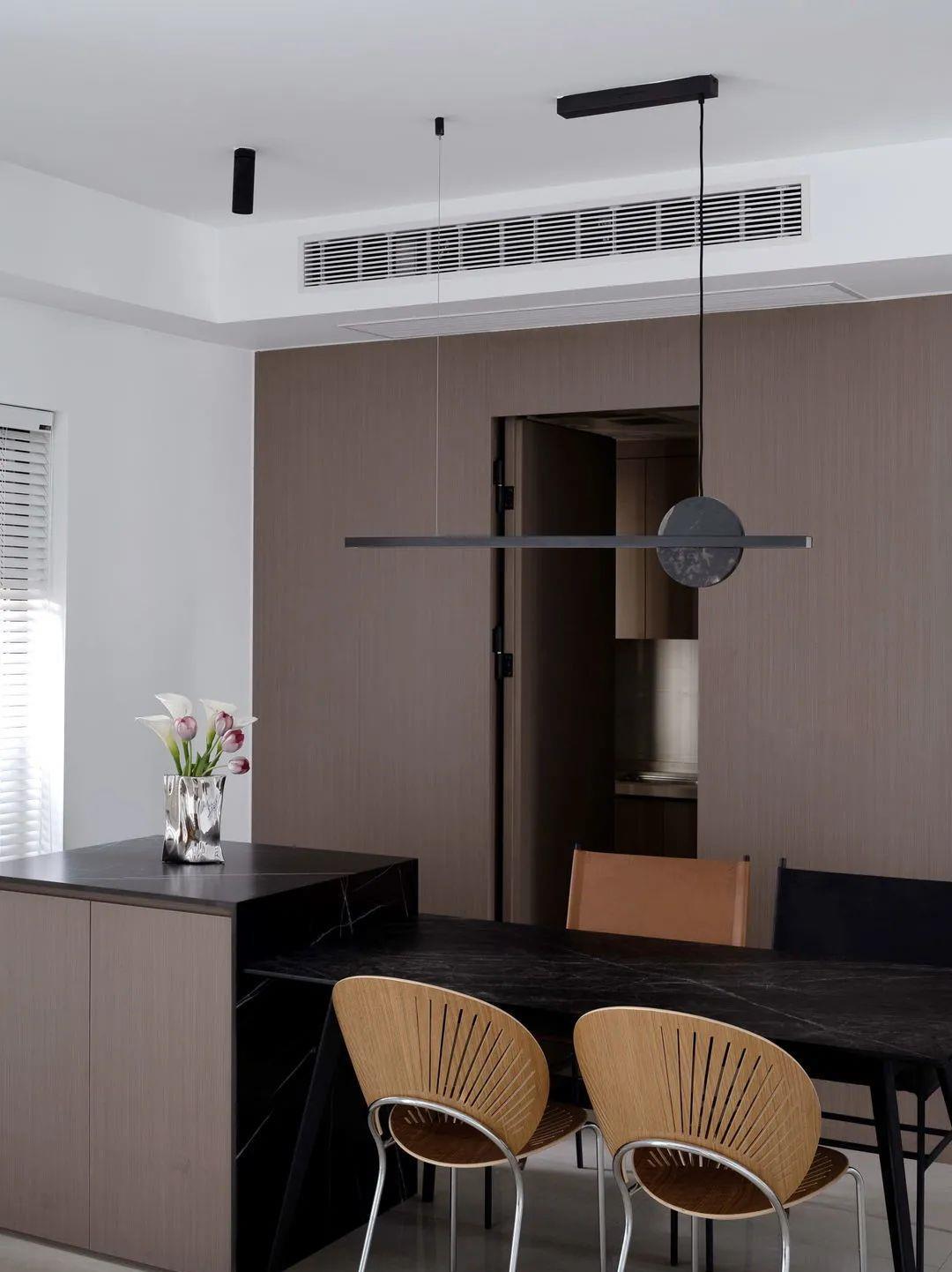 整个餐厅墙面为3米,背靠着厨房,为了整体效果更整洁统一,采用了隐形门设计。