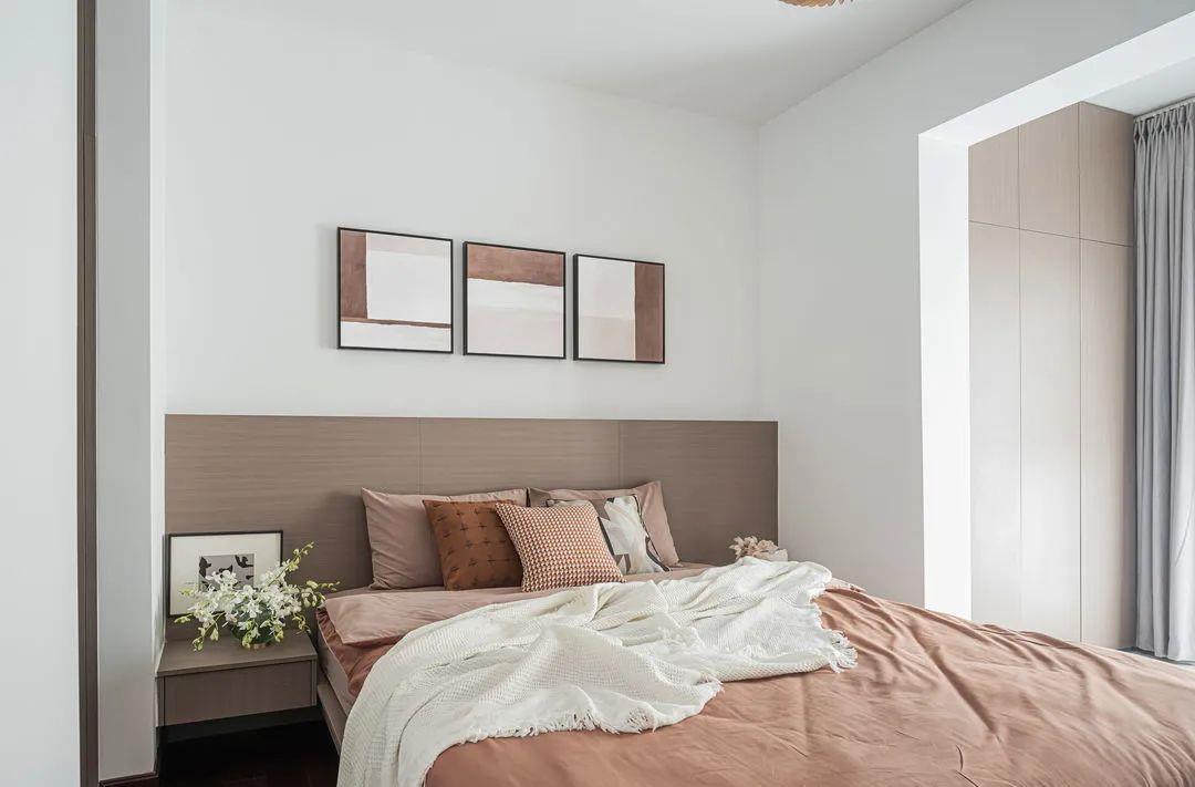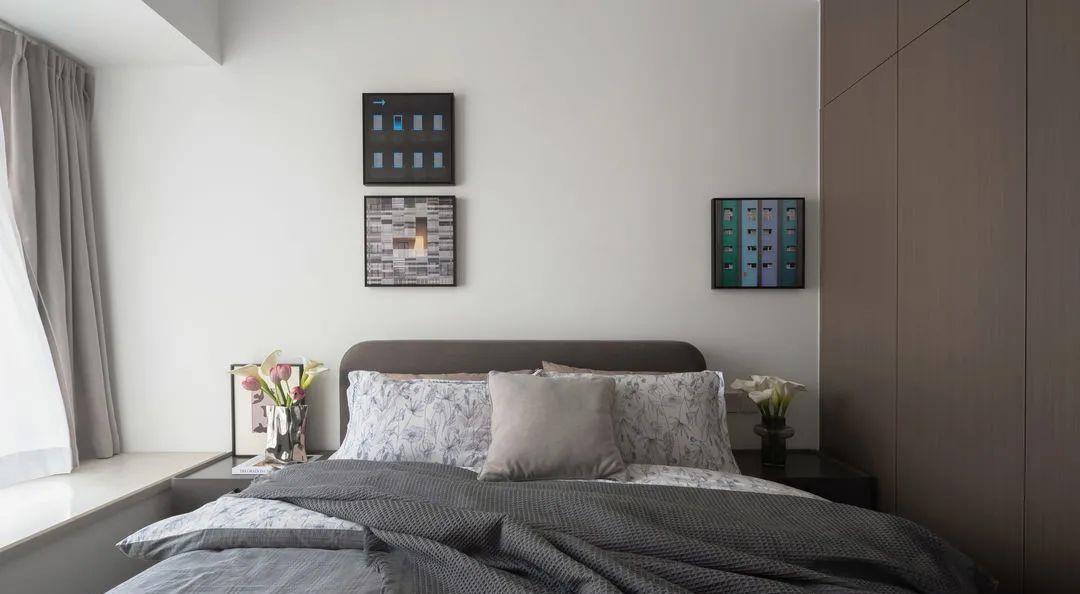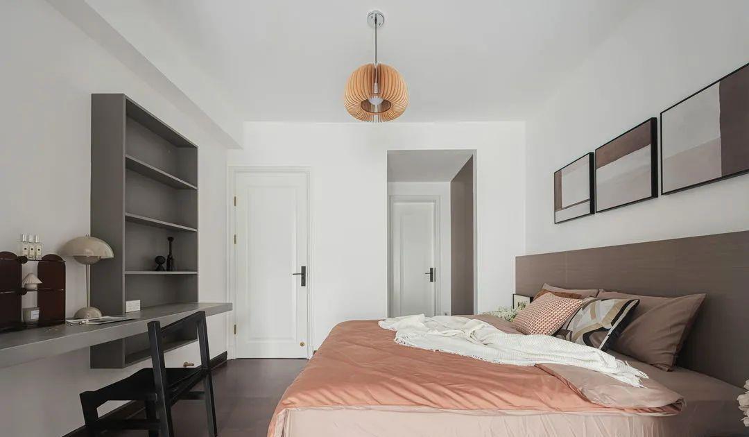 次卧空间有限,没有过度追求造型装饰,以实用性为主。没有特别界定年龄和性别,选择了和整体设计统一的风格。