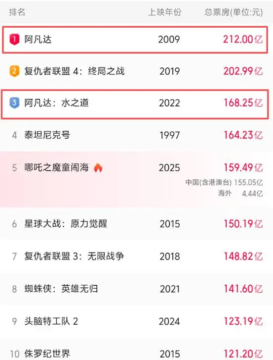第一部稳居全球影史票房第一, 第二部即使在国内的口碑一般,但依旧位列全球票房第三,以168亿的票房宣告“权威”,崛起的国漫《哪吒2之魔童闹海》也才排在第五名。