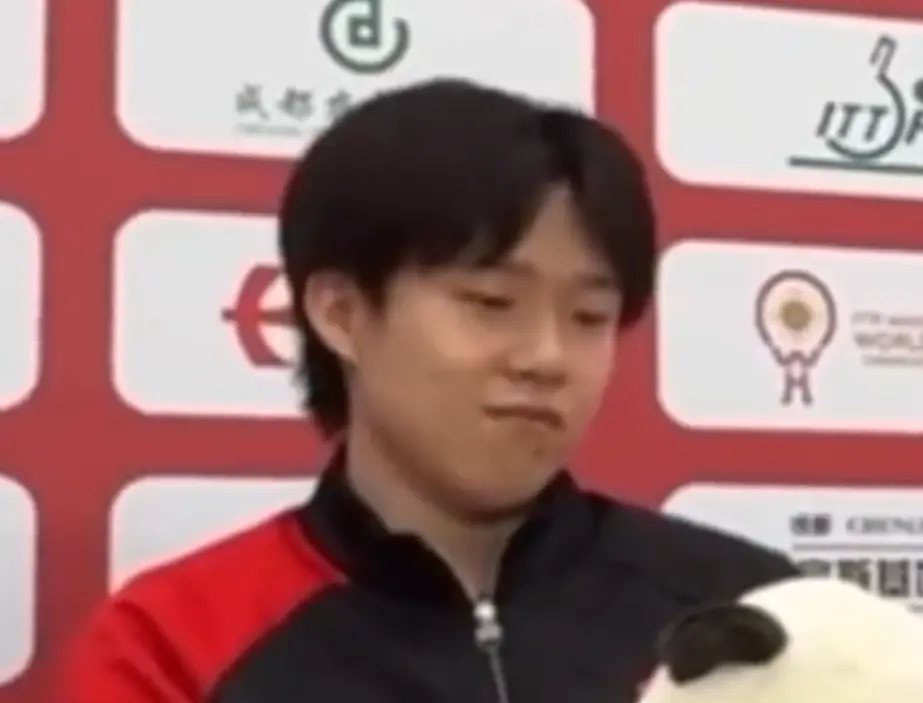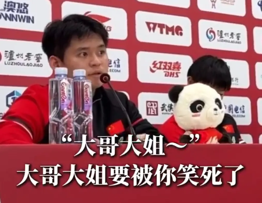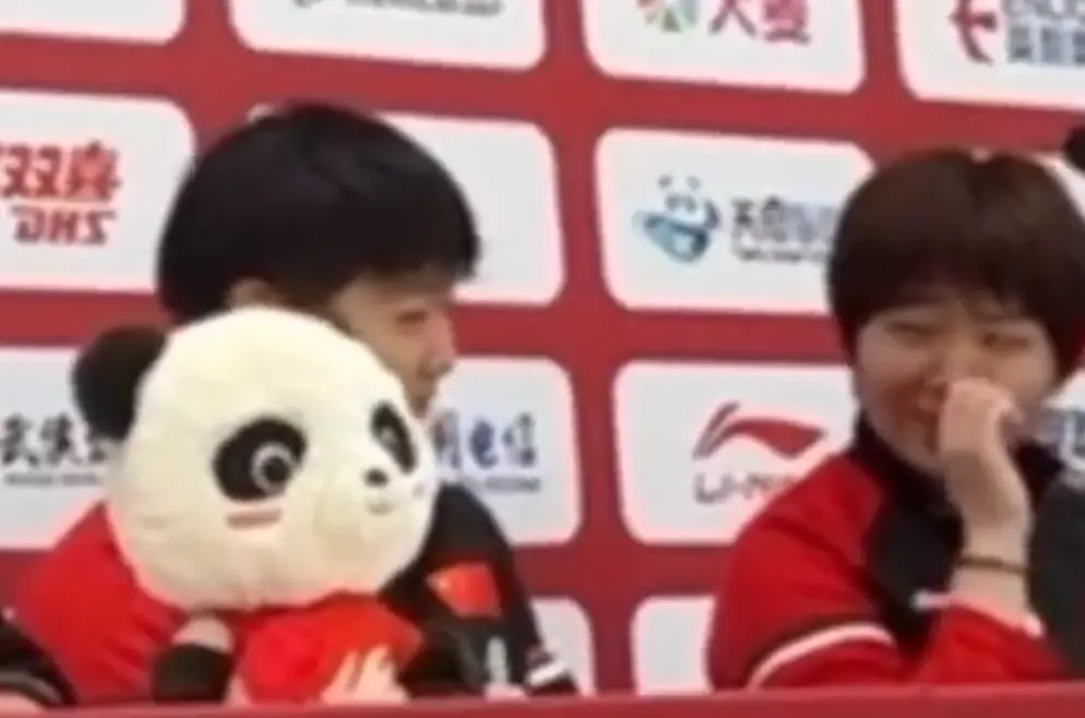 一旁的王楚钦、孙颖莎、蒯曼都在憋笑,但实在是太好笑了终于还是没有憋住。