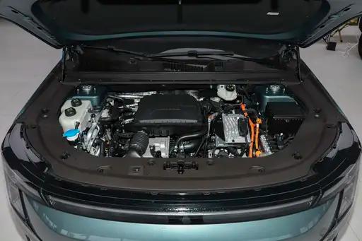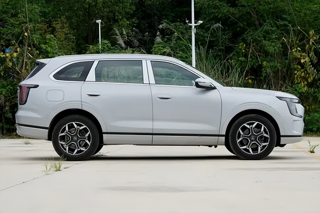 车身侧面展现出一种稳定、从容的视觉张力。得益于长轴设计,整车比例十分协调,前后悬都较短,车侧线条顺畅自然。腰线从前灯延伸至尾灯,配合上扬的窗线,使得车侧呈现出一种向前俯冲的动态姿态。车门下方的防擦饰板采用了磨砂质感的黑色涂层,视觉上降低了重心,也让整车更具户外风格。轮毂提供18英寸与19英寸两种规格,造型简洁有力,轮胎尺寸合理,兼顾舒适与通过性。侧面设计没有刻意堆叠肌肉线条,而是用比例与细节取胜。隐藏式门把手与悬浮式车顶的设计让整车更具现代感,同时风阻系数控制得较好,对于插混车型的能耗优化也有帮助。