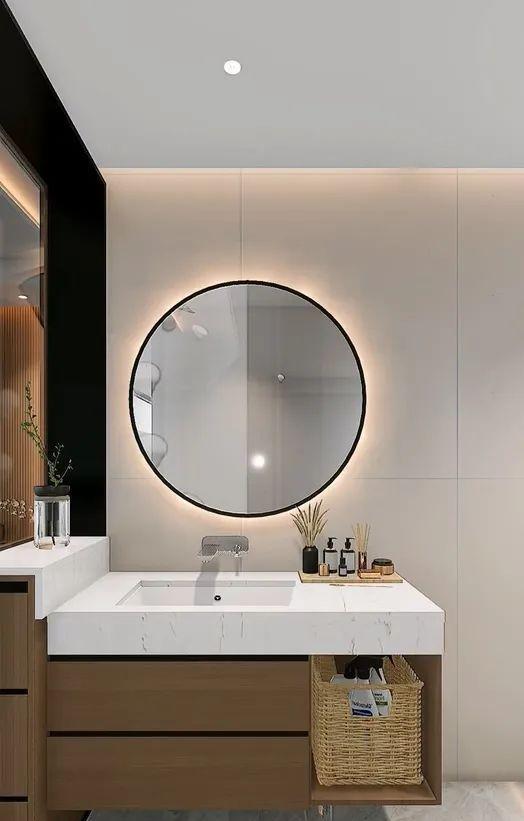 洗漱台采用墙排下水方式并定制悬空款式洗漱台,造型简洁大方,清理便捷。