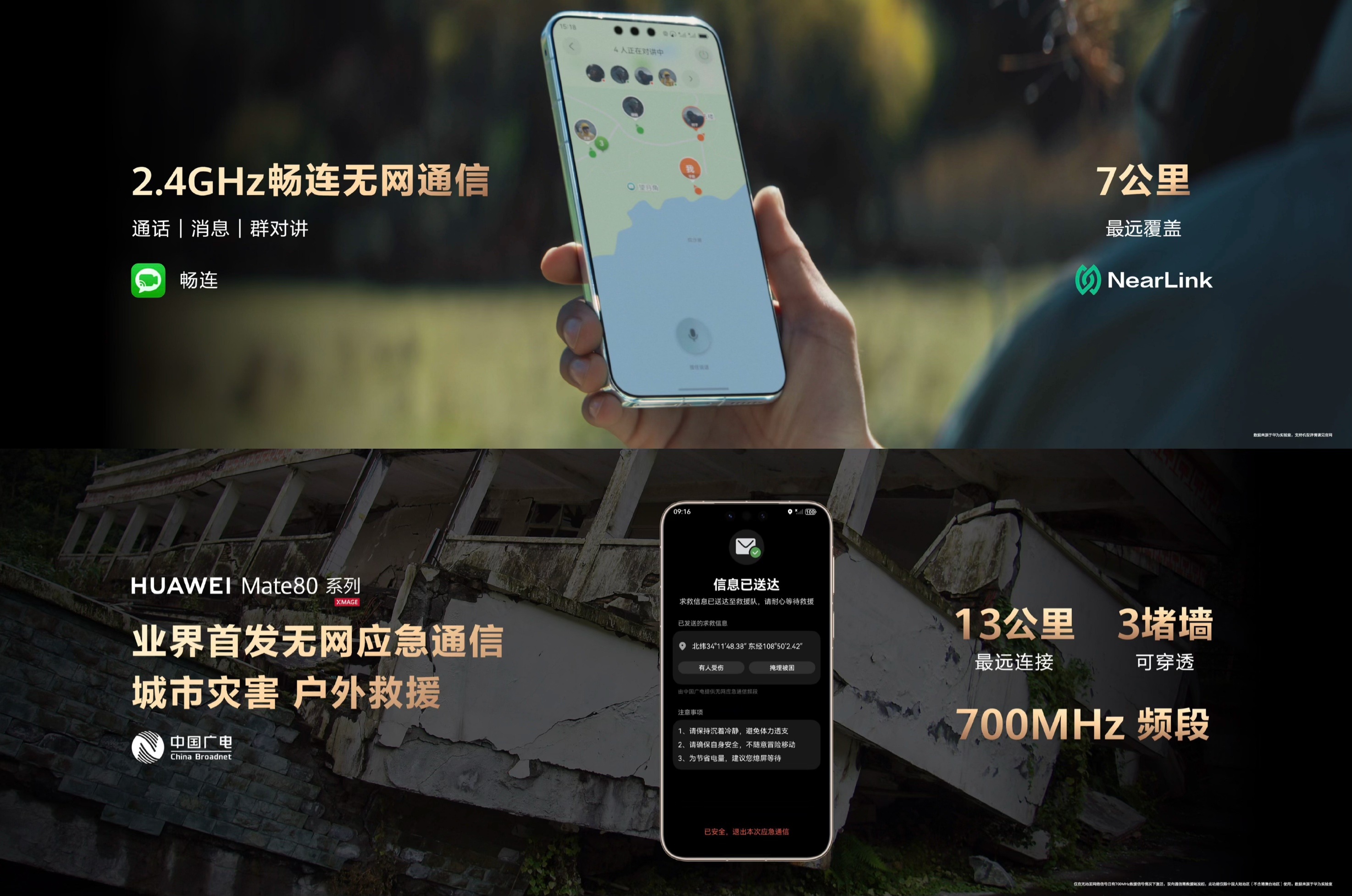 据了解华为Mate 80系列首发700MHz无网应急通信功能,可在无蜂窝网络、WiFi或卫星信号的极端环境下,实现最远13公里的点对点通信,并可穿透3堵墙体或楼板,实现了断网不断联。
