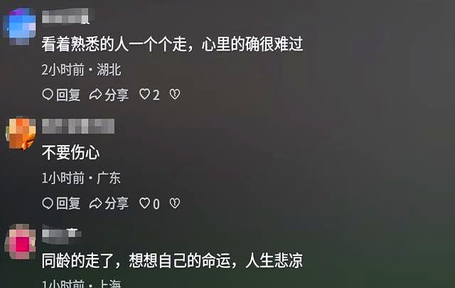 有网友说“有些感情没法说清楚,谁送谁最后一程都难受”,第二个网友说“活到九十多岁,身边人一个个都走光了,只剩下自己也没劲了”。