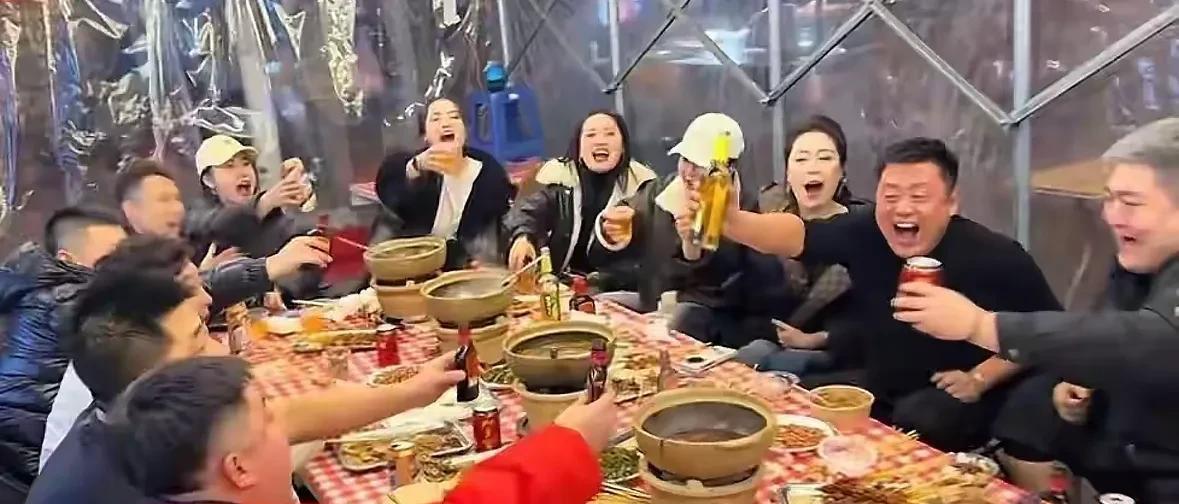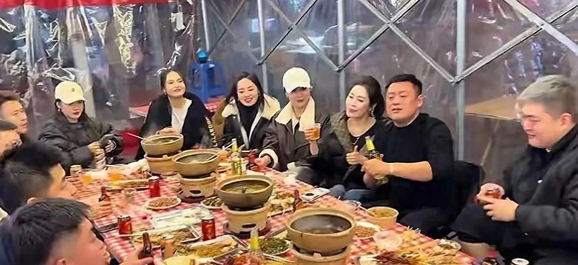 赵本山儿子赵一楠这两天带领演出团队奔赴外地,工作圆满结束后,已至深夜,团队一行人并未前往高档场所,而是选择了一家极具烟火气的街边大排档,在临时搭起的塑料棚下,众人将几张简易方桌拼在一起,围坐于小板凳上,砂锅咕嘟作响,烤串香气四溢,热闹的氛围驱散了冬夜的寒意。