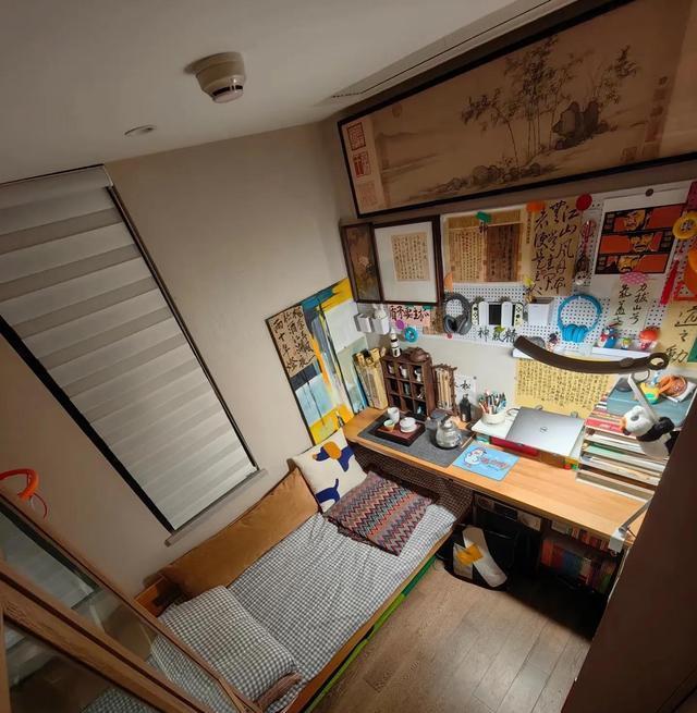有人把一个空间利用得这么巧,竟融合了睡觉、工作、休闲好几种功能,甚至还能营造出一点文化气息。