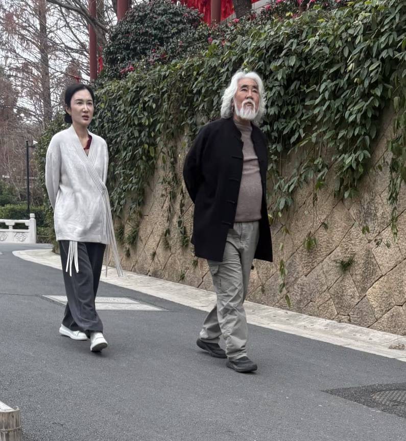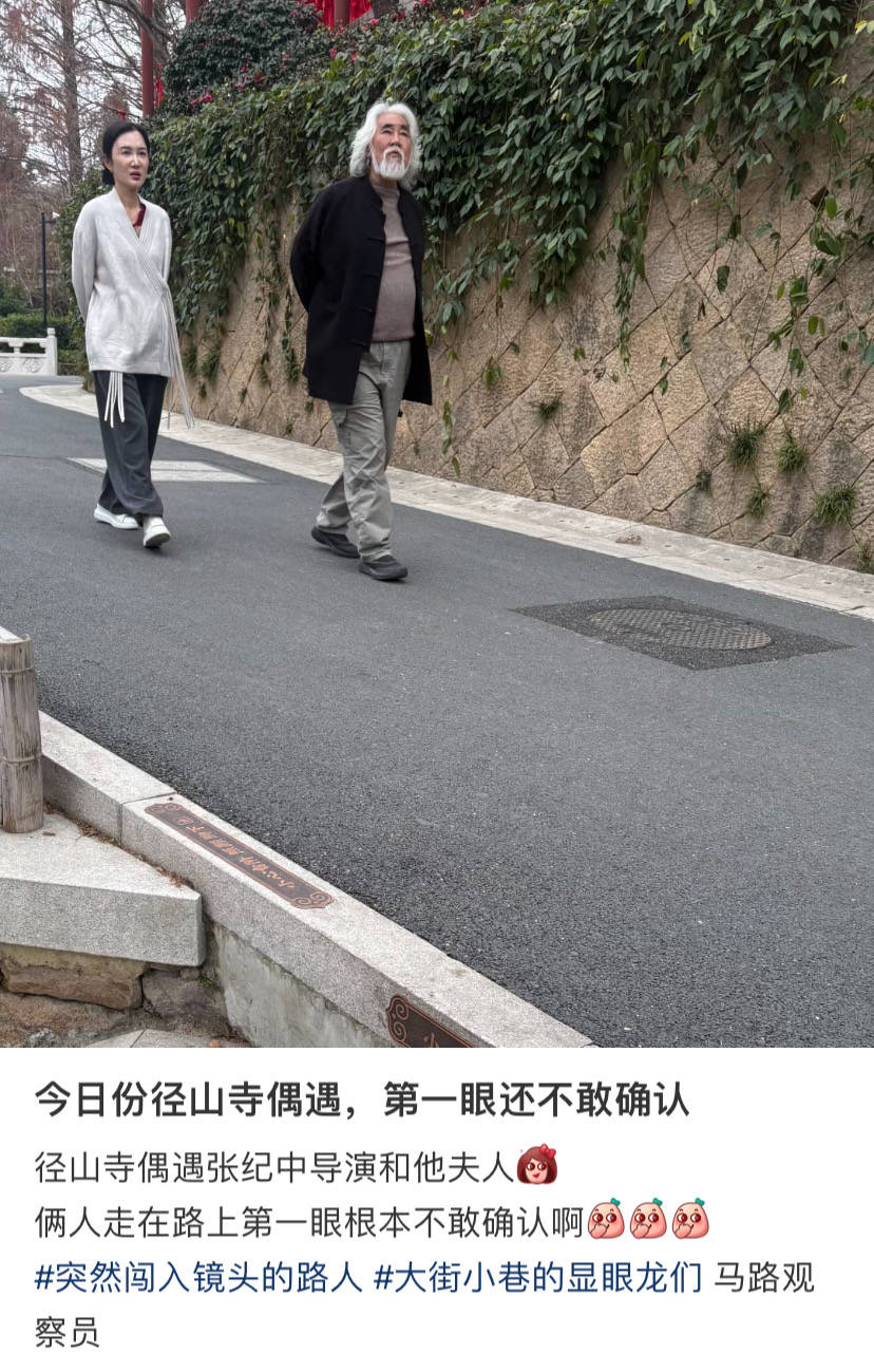 杭州径山寺,有网友偶遇张纪中夫妇。74岁的张纪中,依然白须白发、挺着大肚很悠闲。杜星霖跟在张纪中身后,看着脸颊凹陷、身材干瘪,一副有气无力的憔悴模样。
