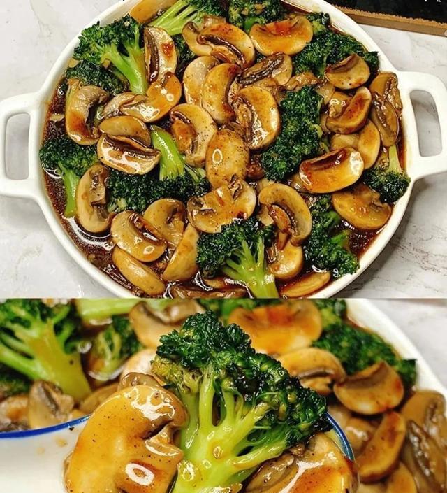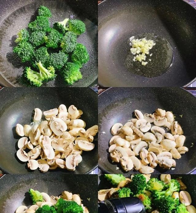 西兰花,口蘑洗干净切好备用,蒜切末。西蓝花濯水捞出,锅里热油加入蒜末炒香,加入口蘑炒软,加入西蓝花翻炒均匀加入一勺生抽,一勺蚝油,少许盐,少许黑胡椒碎,翻炒均匀即可。
