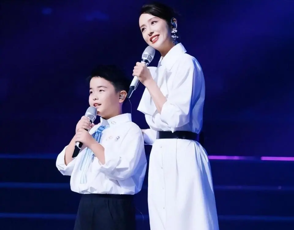 9岁的朵朵展现出超越年龄的沉稳。大湾区晚会上与母亲合唱《世上只有妈妈好》,台风从容打动观众;《轻于鸿毛》首映礼上,她西装革履祝贺主创“票房大卖”,被调侃“早晚接爸爸的班”。这个孩子遗传母亲梨涡,复刻父亲神态,甚至抱着小本子记录“镜头要跟着故事走”。