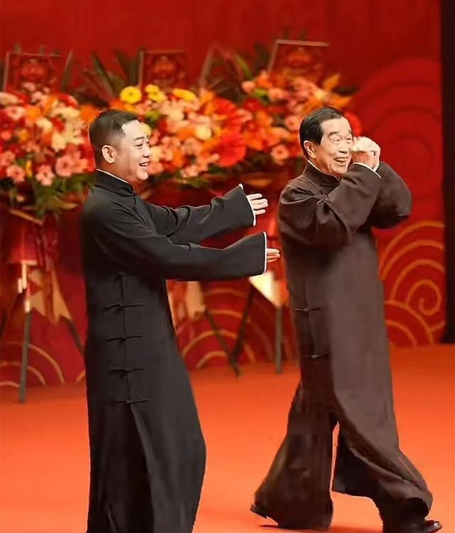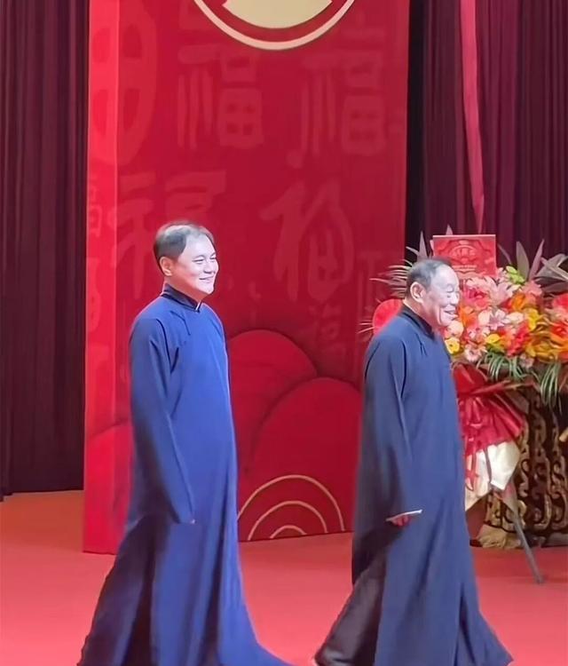 德云社演员都非常的尊师重道。从上台开始,孔云龙就一直伸手让着师爷石富宽。台下观众更是兴奋,从掌声、叫好声可以深切地感受到。