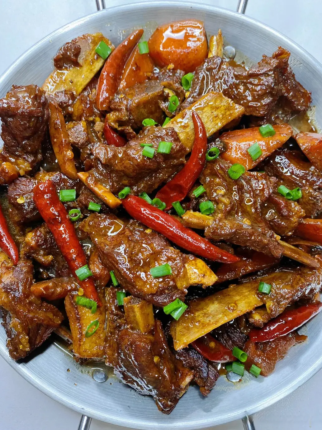 白萝卜性凉,能清热生津,缓解秋冬干燥引起的喉咙不适。红烧做法能去除萝卜的辛辣味,使其口感甜软。