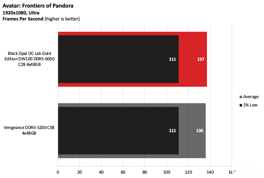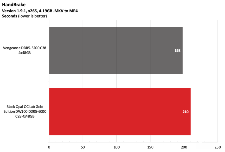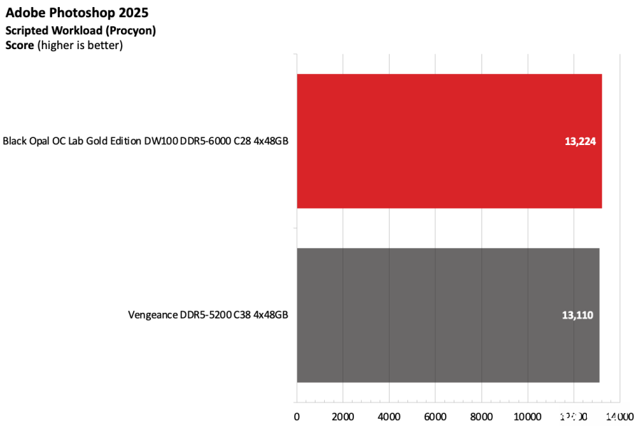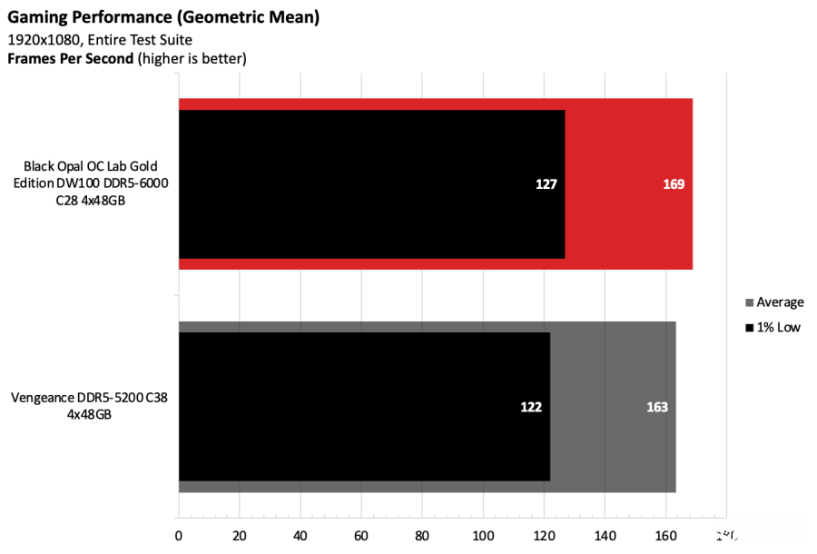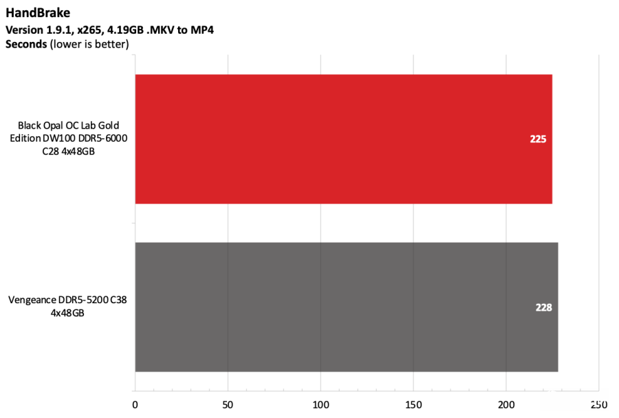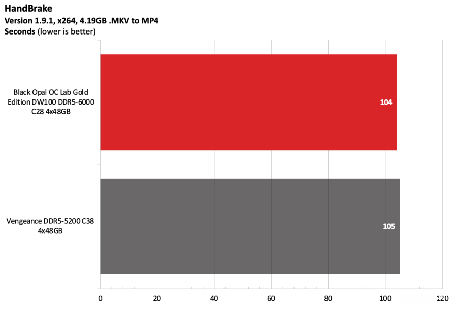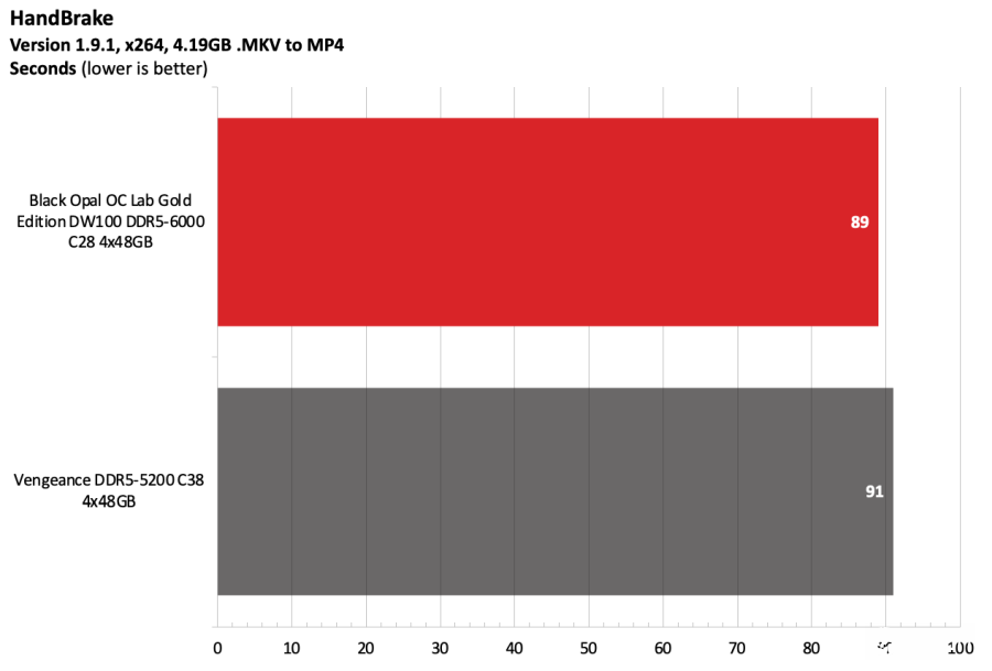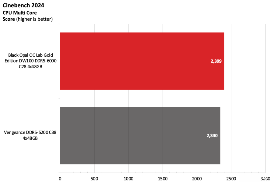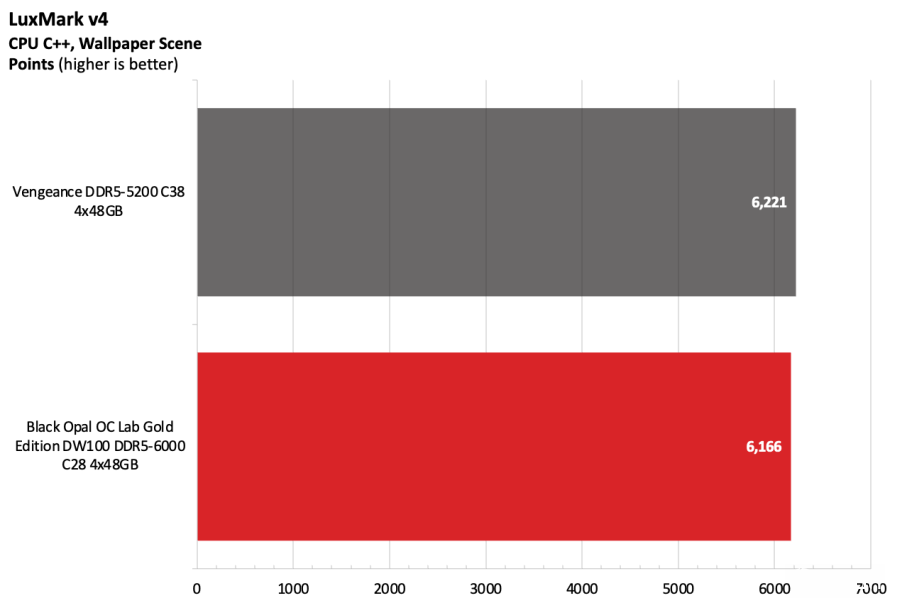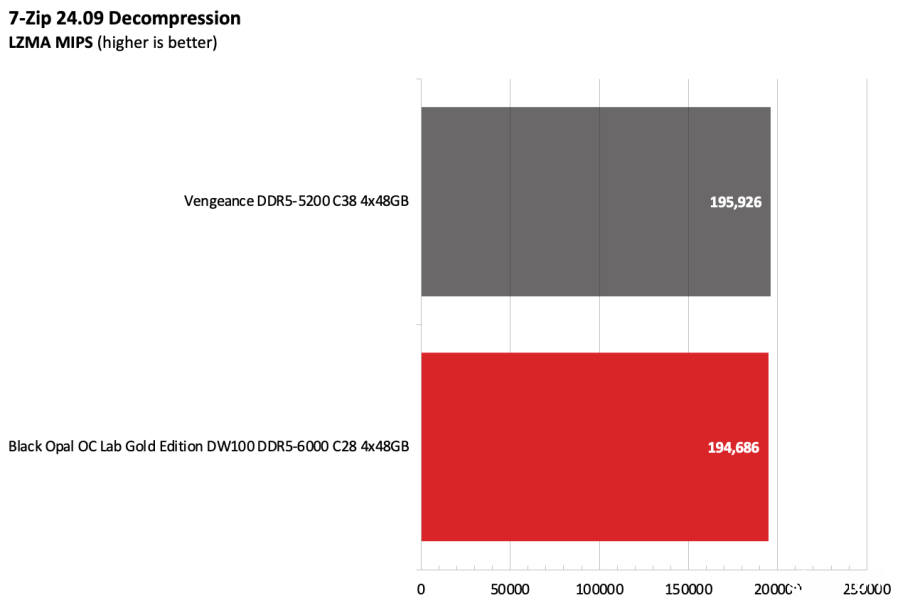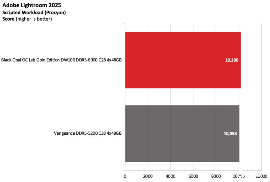 黑曜石OC Lab金版DW100在Intel测试平台上表现出色。该套件运行在DDR5-6000,作为主流配置已经相当稳健,并且凭借紧凑的时序在竞争者中脱颖而出。