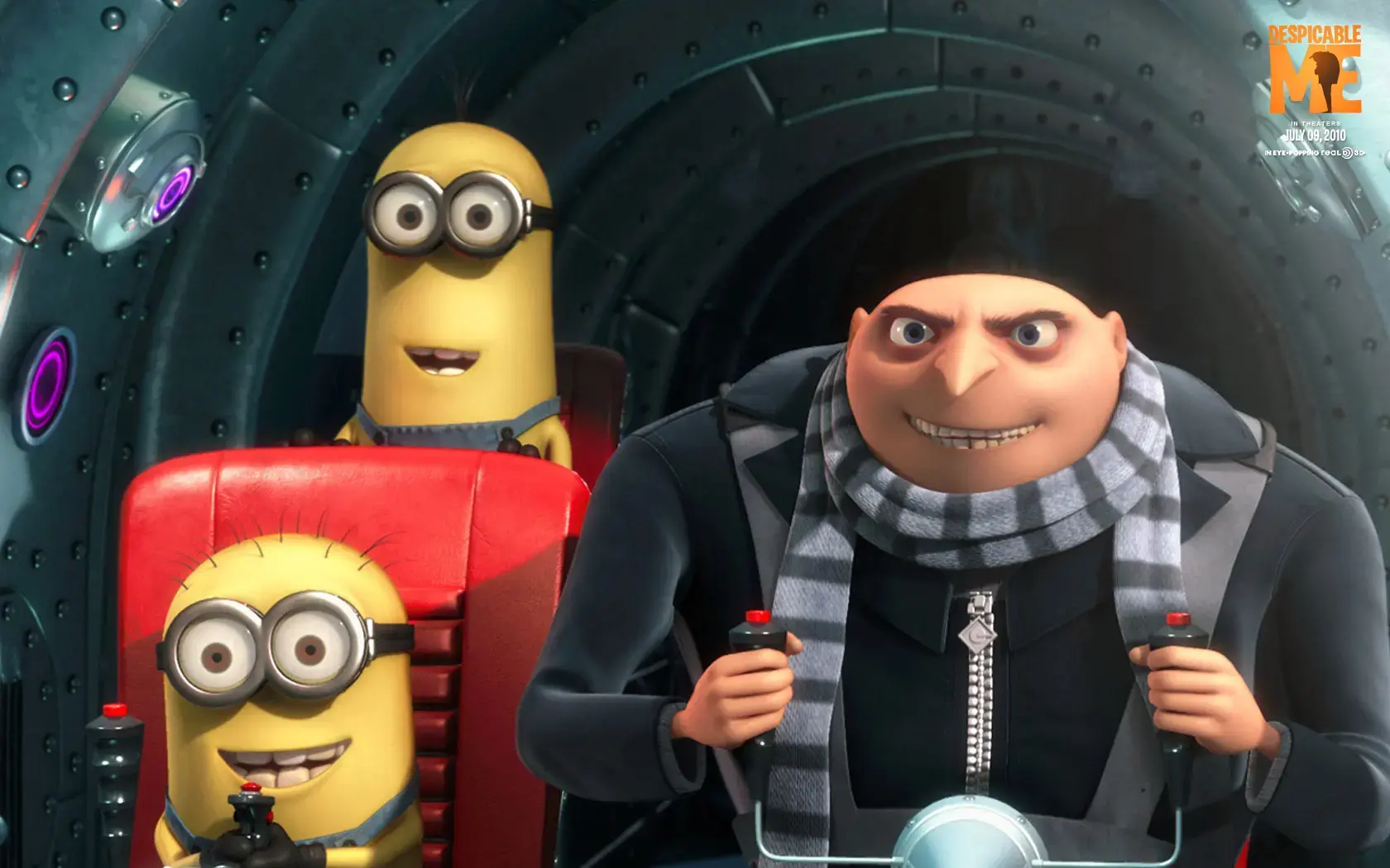 2010年第一部《神偷奶爸》的成功,源于它对传统动画范式的彻底解构。主角格鲁不是一个典型的英雄,而是一个“用曲别针扎气球”的冷面反派。他住在阴森的地下堡垒,用冷冻射线枪威胁对手,甚至计划用火箭偷走月亮。