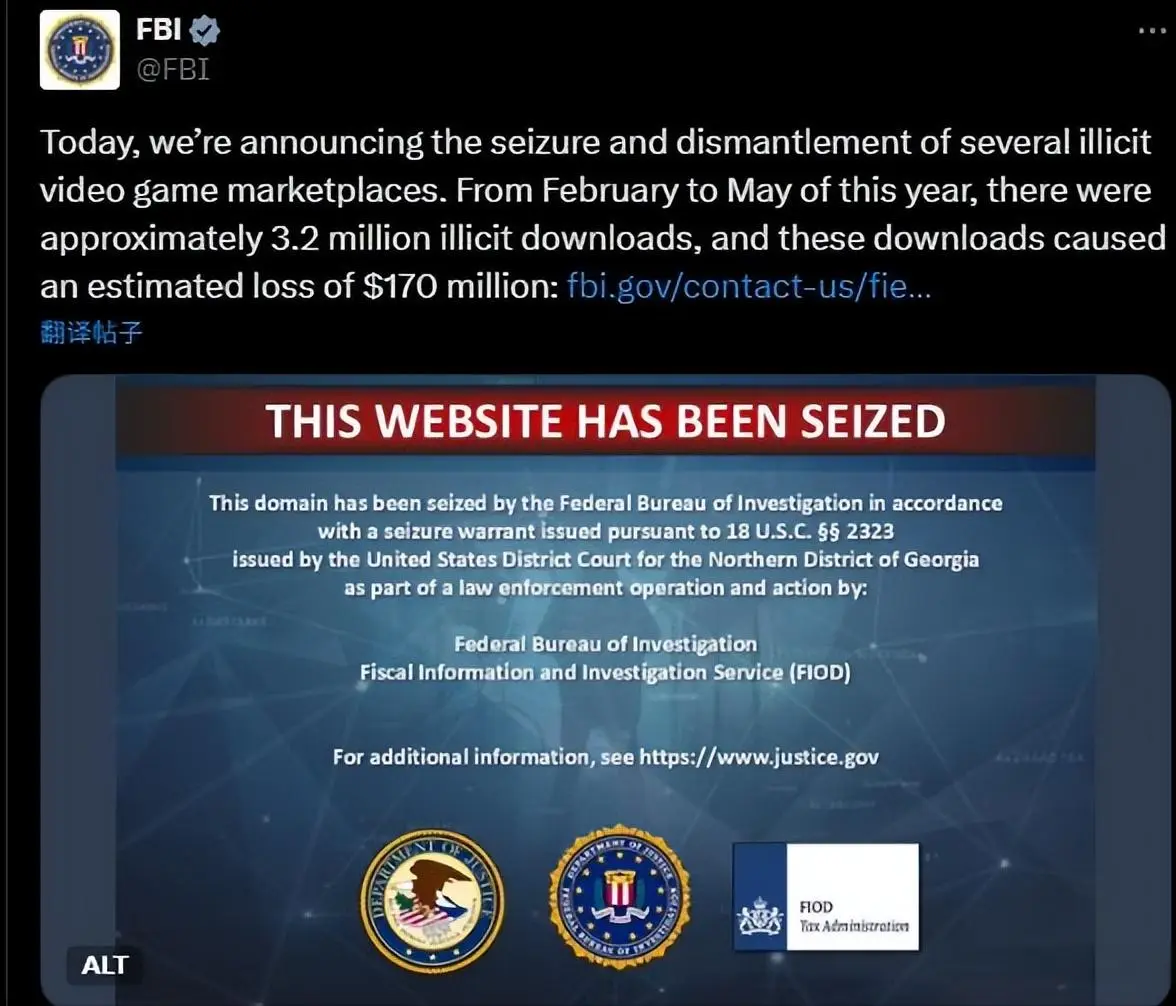 不少玩家此时才后知后觉,FBI不是总喜欢出现在电影片头吗!怎么开始查盗版了,另外怎么还有这么一个网站啊!