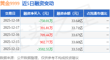 证券之星消息,12月18日,黄金9999(159937)融资买入3760.11万元,融资偿还4510.12万元,融资净卖出750.01万元,融资余额33.64亿元。