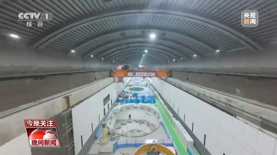 记者介绍,叶巴滩水电站的地下厂房位于地下480米深处,整个厂房长268米,高74米。厂房内有两个圆柱状的装置,是发电机组的顶罩,发电机就安装在顶罩的正下方。