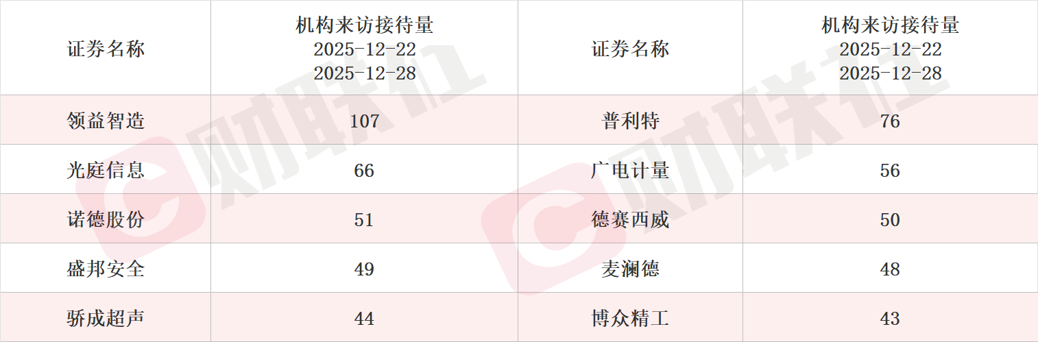 具体上市公司方面,据Choice数据统计,博盈特焊和泰和新材接受调研次数最多,均达到3次。从机构来访接待量统计,领益智造、普利特和光庭信息排名前三,机构来访接待量分别达107家、76家和66家。