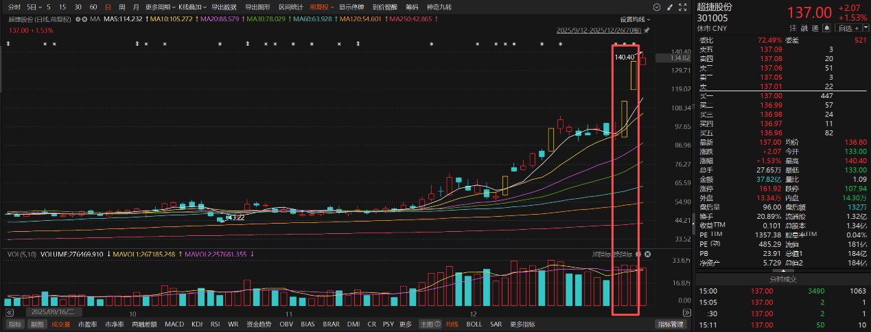 超捷股份周二发布机构调研纪要表示,除已合作的几家头部民营火箭企业外,公司正积极拓展商业航天领域的其他潜在客户,并已取得实质性进展,成功获取了新客户的订单。结合当前行业快速发展态势及公司客户开发节奏,预计将于明年一季度起陆续有新客户进入批量合作阶段,并签署新的订单。二级市场上,超捷股份周四收盘录得20CM涨停两连板。