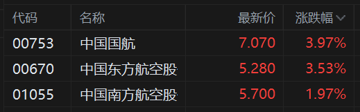 格隆汇12月29日|近日连续回调的港股三大指数再度活跃,中国国航一度涨近5%刷新近期阶段新高,中国东方航空目前涨3.5%,中国南方航空涨2%。