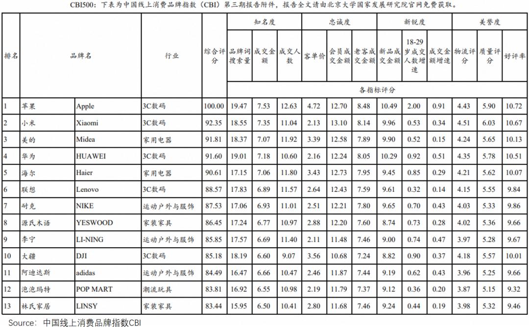 这个指数和榜单由北大国发院发布,淘天集团提供技术支持,基于10亿消费者的真实行为,对品牌进行销量、价格、搜索、口碑等多维度的“打分”。