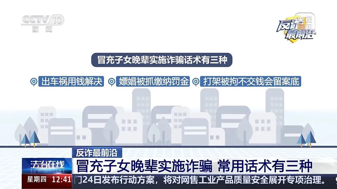 警方介绍,冒充子女晚辈实施诈骗的话术有三种: