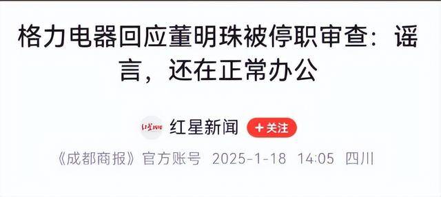 “董明珠因涉嫌违规操作,已被相关部门调查并停职!”
