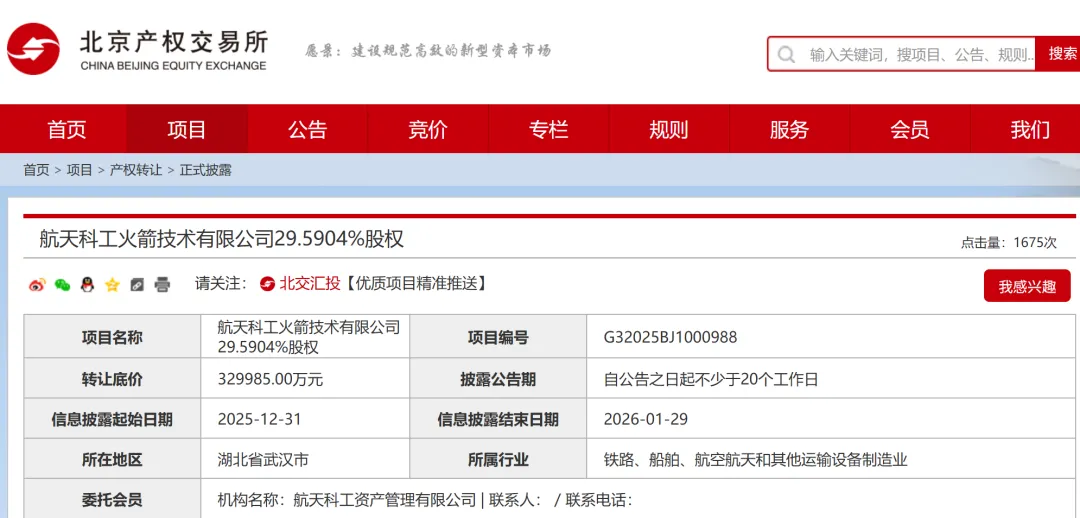 2025年10月,北京产权交易所发布“航天科工火箭技术有限公司30.66%股权”转让信息预披露公告,引发市场热议。