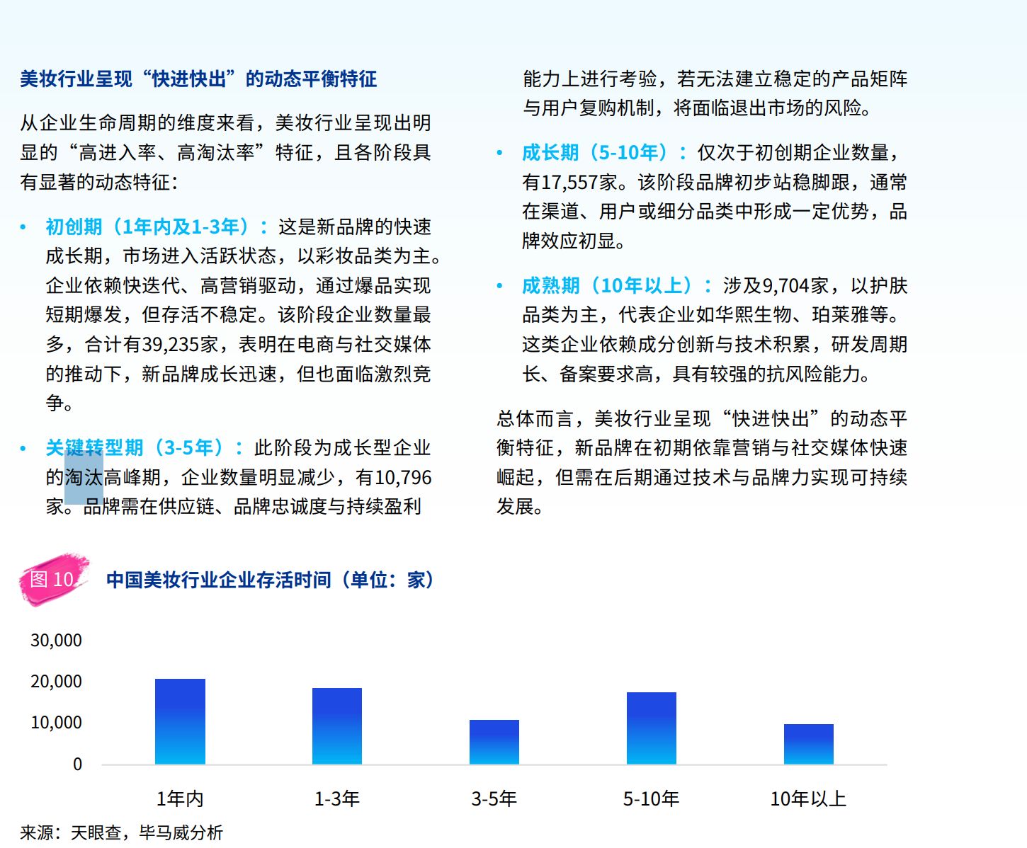 对比行业整体环境,国货美妆正面临由增量市场向存量市场切换的压力。毕马威《2025年中国美妆市场行业报告》显示,国内美妆企业呈现“高进入率、高淘汰率”特征,成立不足3年的初创企业数量超过3.9万家,成立10年以上的国货美妆企业仅占12.6%。