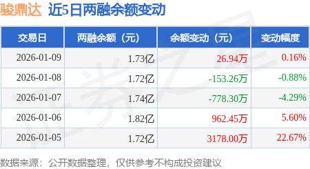 证券之星消息,1月9日,骏鼎达(301538)融资买入3826.69万元,融资偿还3799.53万元,融资净买入27.16万元,融资余额1.72亿元。