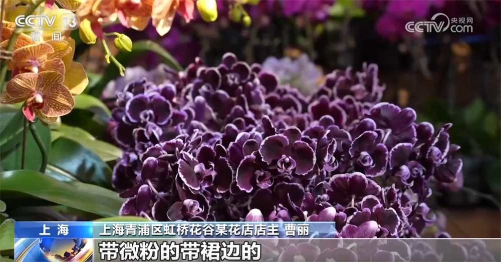 在各类年宵花销售中,蝴蝶兰一直是市场中的“顶流”,随着今年蝴蝶兰新品种的增多,带动市场销售总量同比提升了20%。记者在一家专卖蝴蝶兰的花店看到,红色、黄色、紫色、绿色等多种颜色的蝴蝶兰依次排开,争奇斗艳。